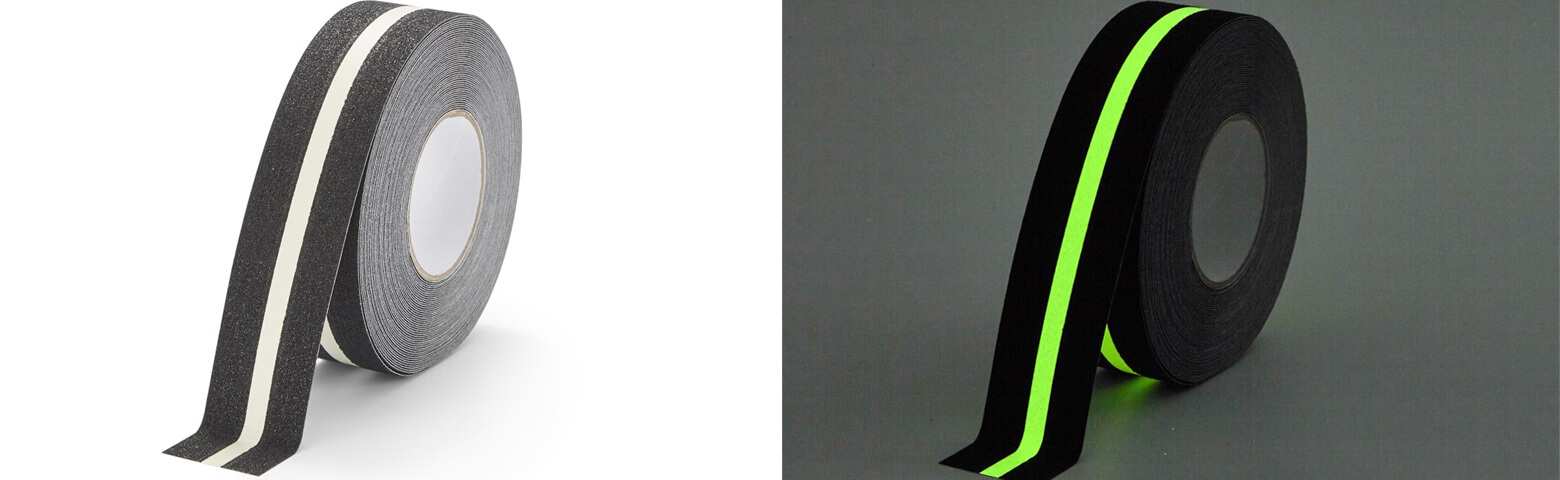 Cette combinaison en fait une solution idéale pour le marquage des allées piétonnes, des issues de secours, des marches d’escalier ou des zones dangereuses qui doivent rester visibles en cas de faible luminosité ou d’urgence.