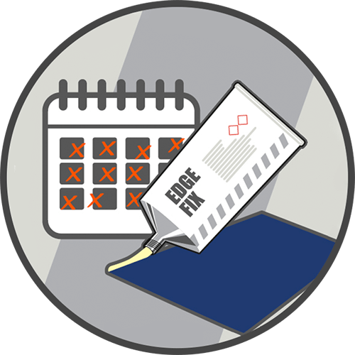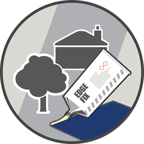Edge Fix est appliqué à la fois sur le support et sur le ruban. Il se rétracte ensuite lors du durcissement, ce qui permet de tirer efficacement le matériau en place et de le maintenir fermement et en toute sécurité.