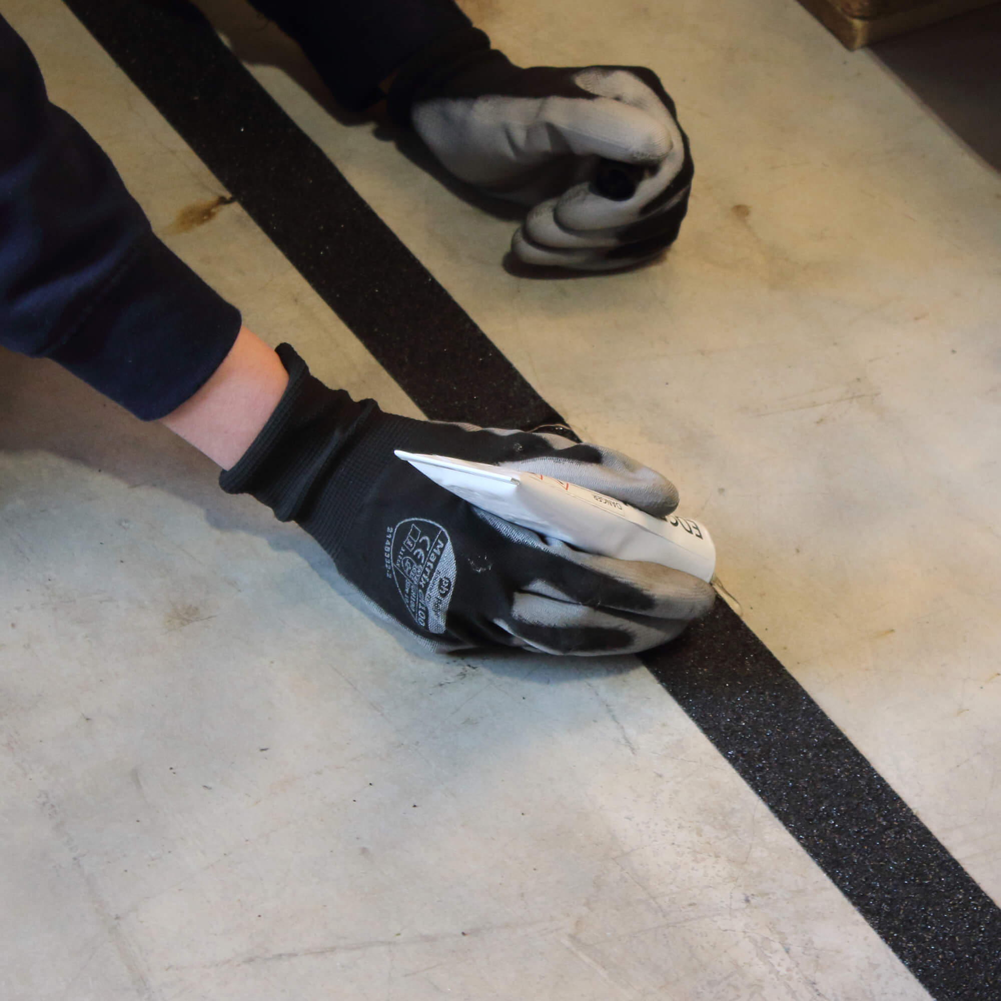 - Réduit le risque de soulèvement des rubans antidérapants dans les zones à forte circulation